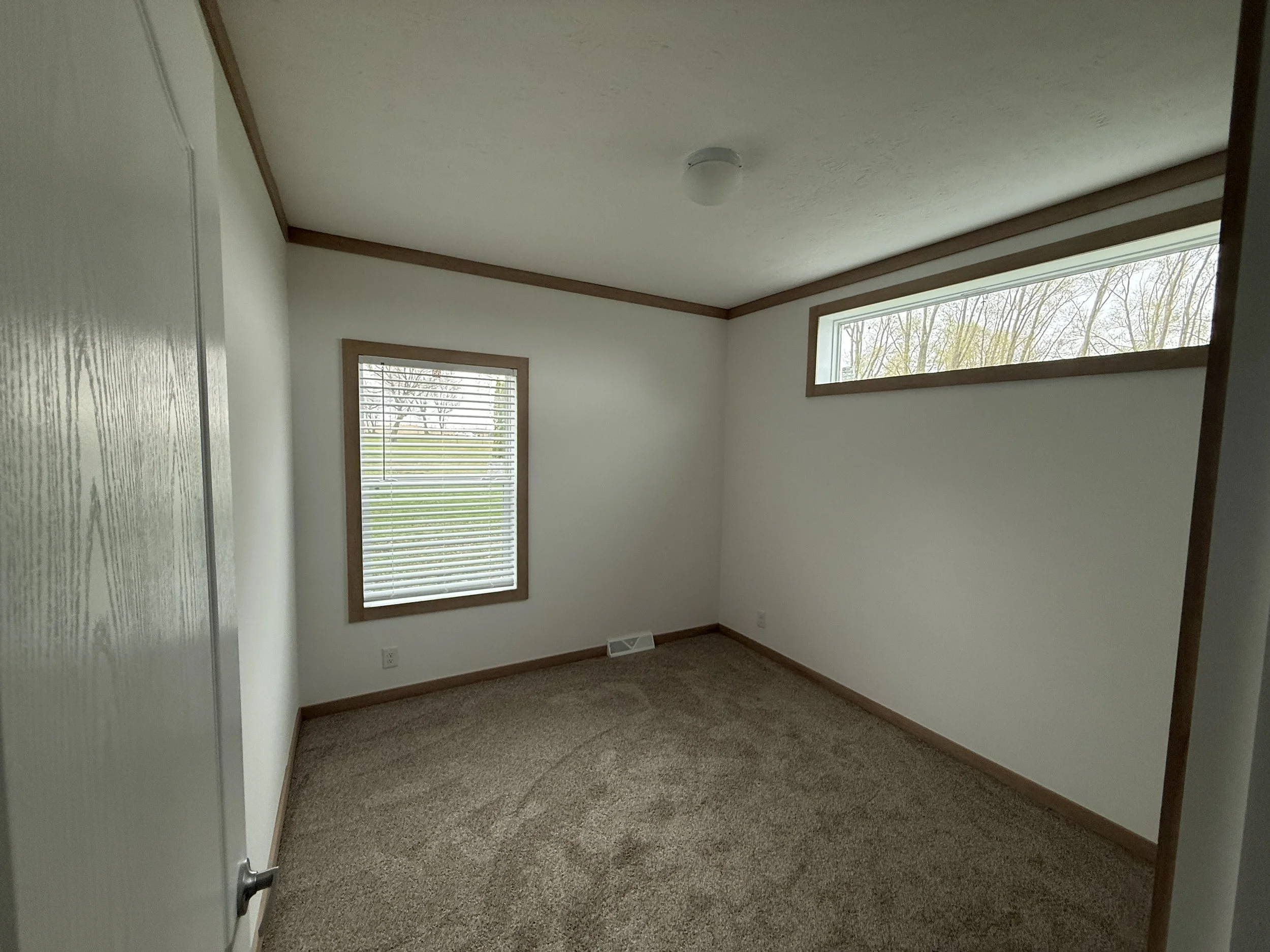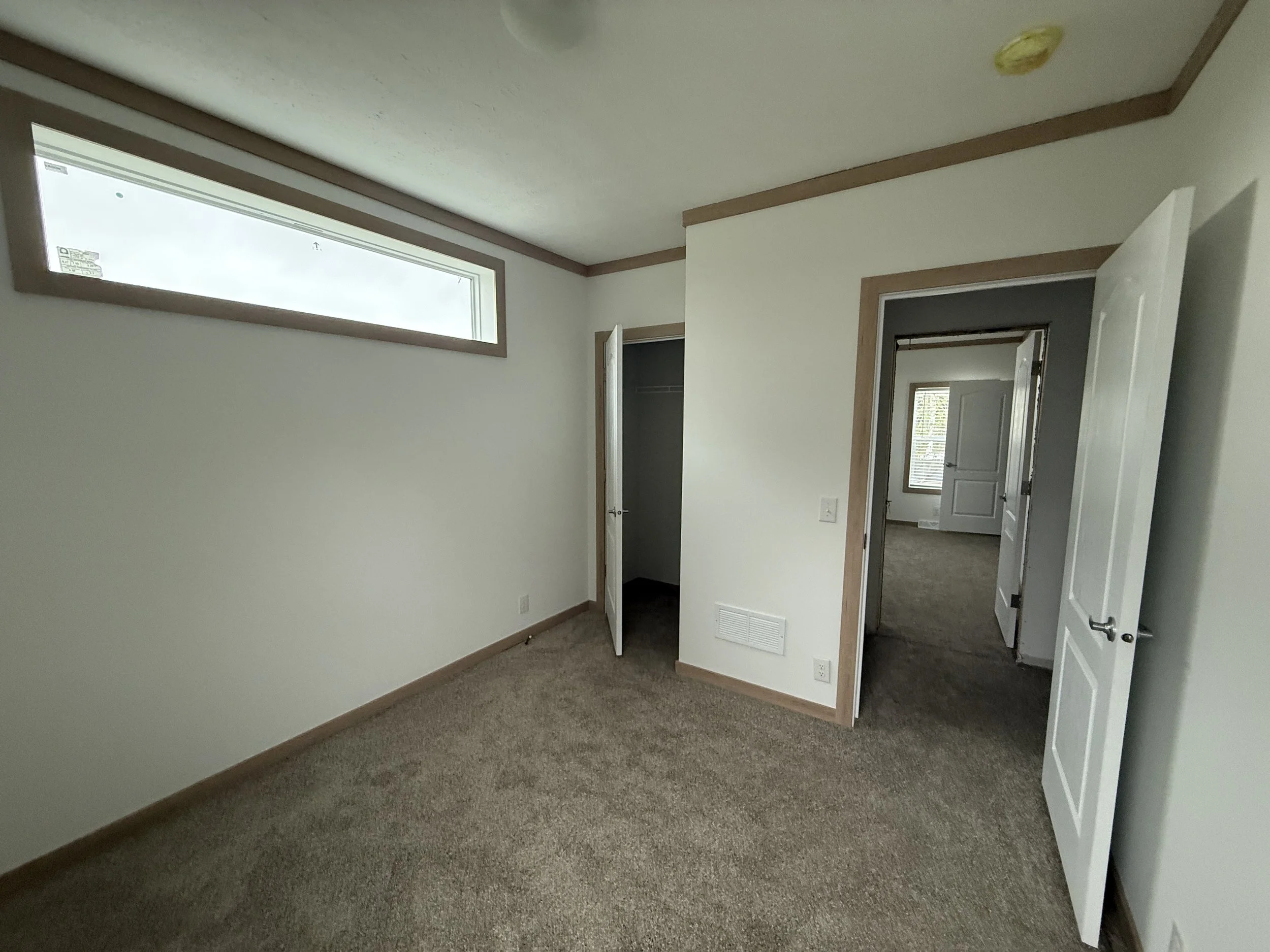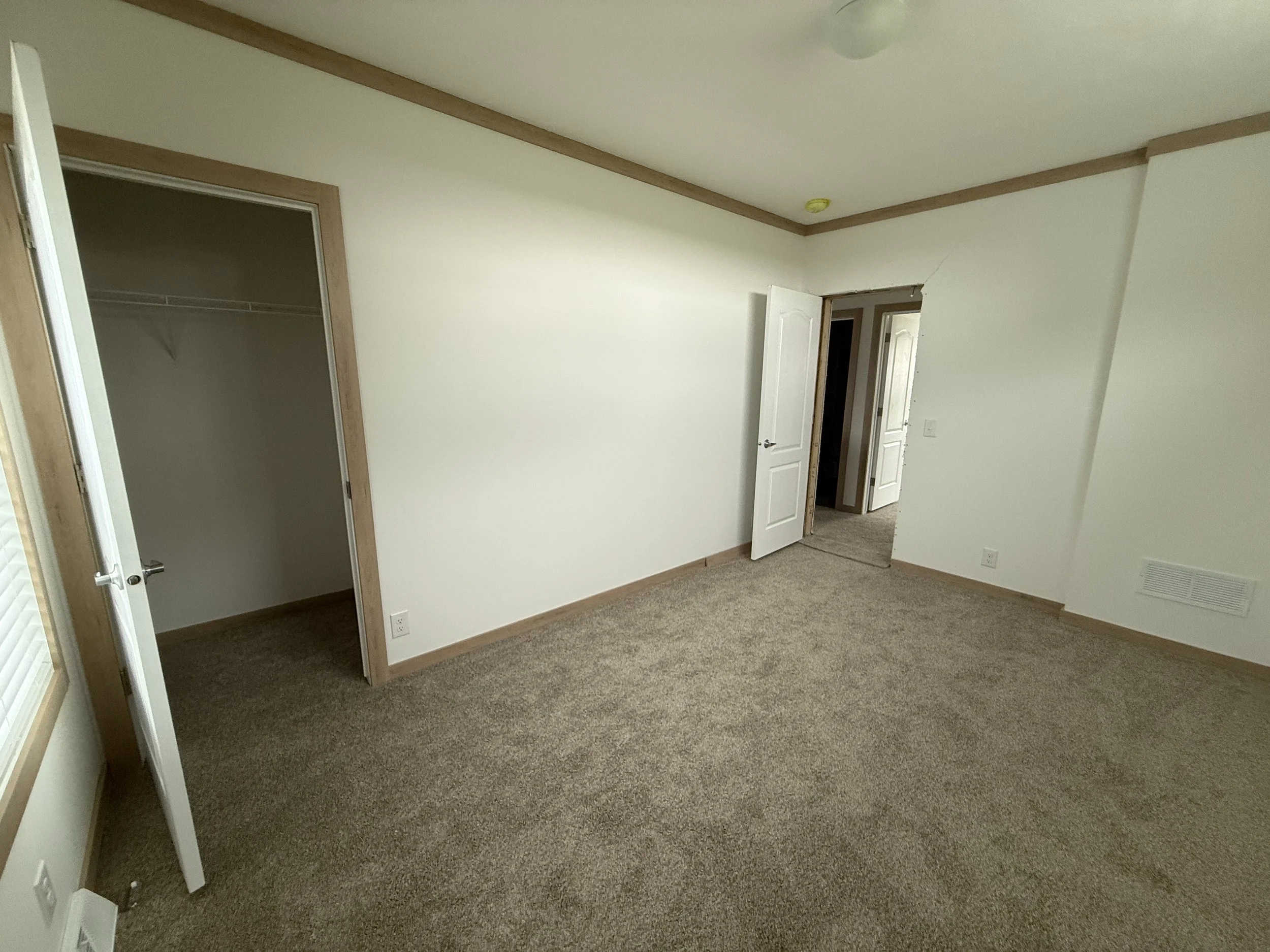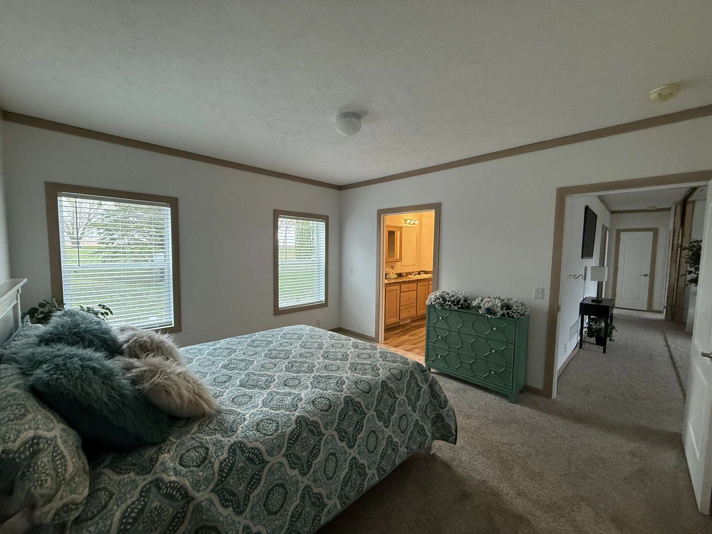 This 30' x 52' three-bed, two-bath home features an inviting front-facing layout with the kitchen, dining, and living rooms all positioned along the front of the home for bright, open living. A stylish clipped corner in the dining room adds architectural interest and extra charm, creating a unique focal point in this thoughtfully designed floor plan.