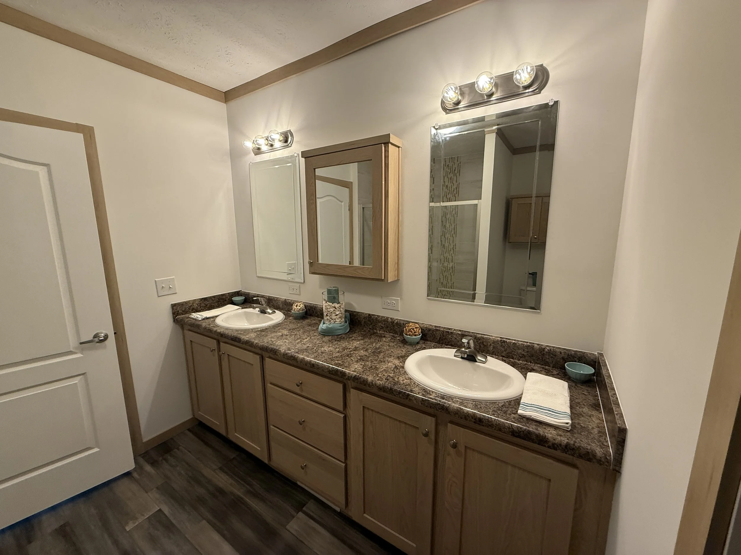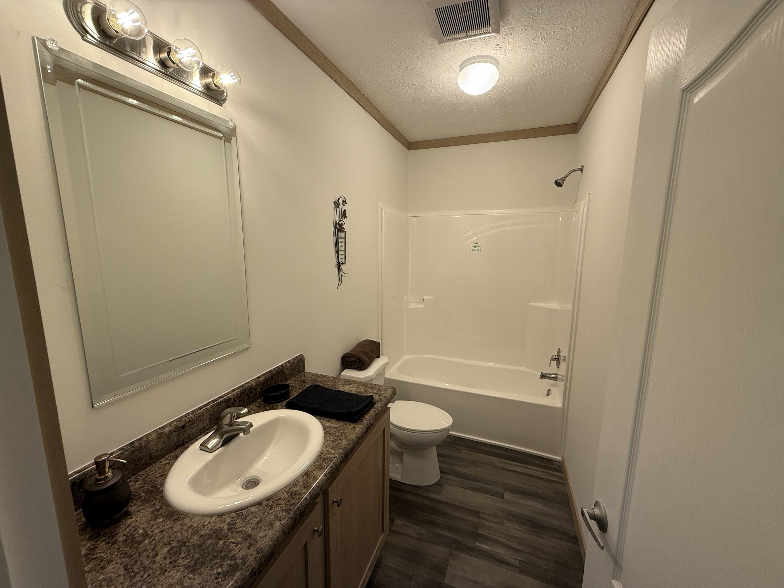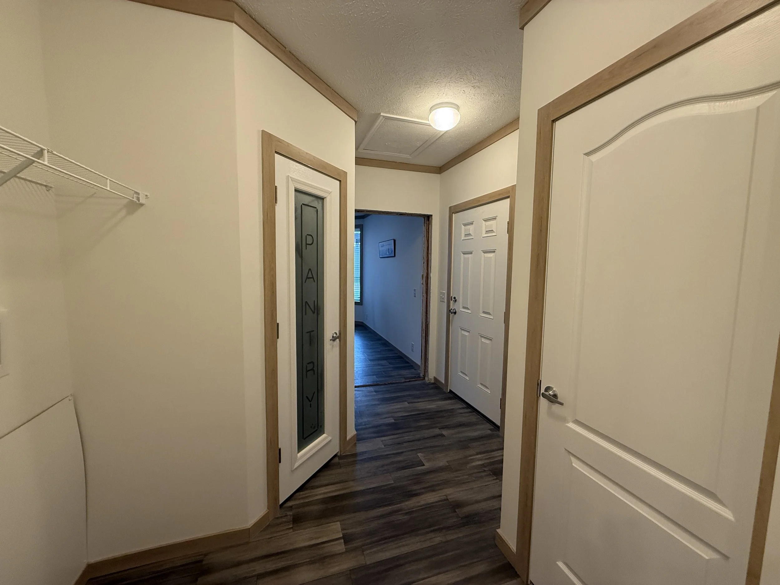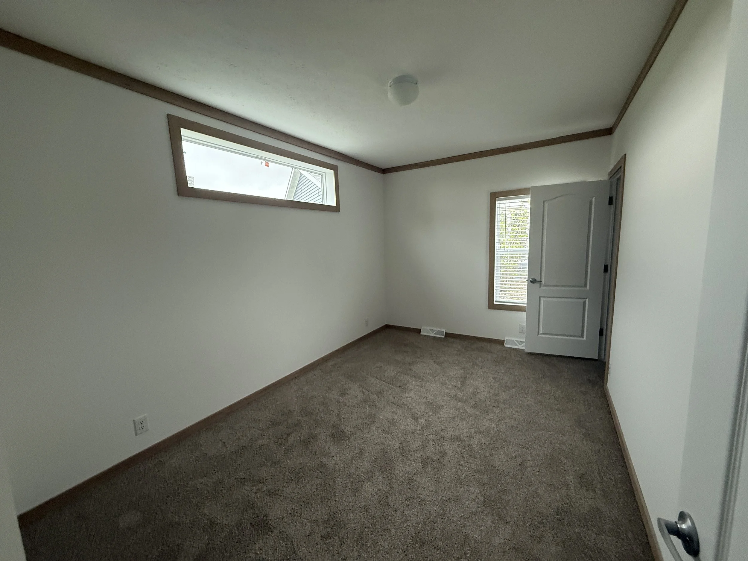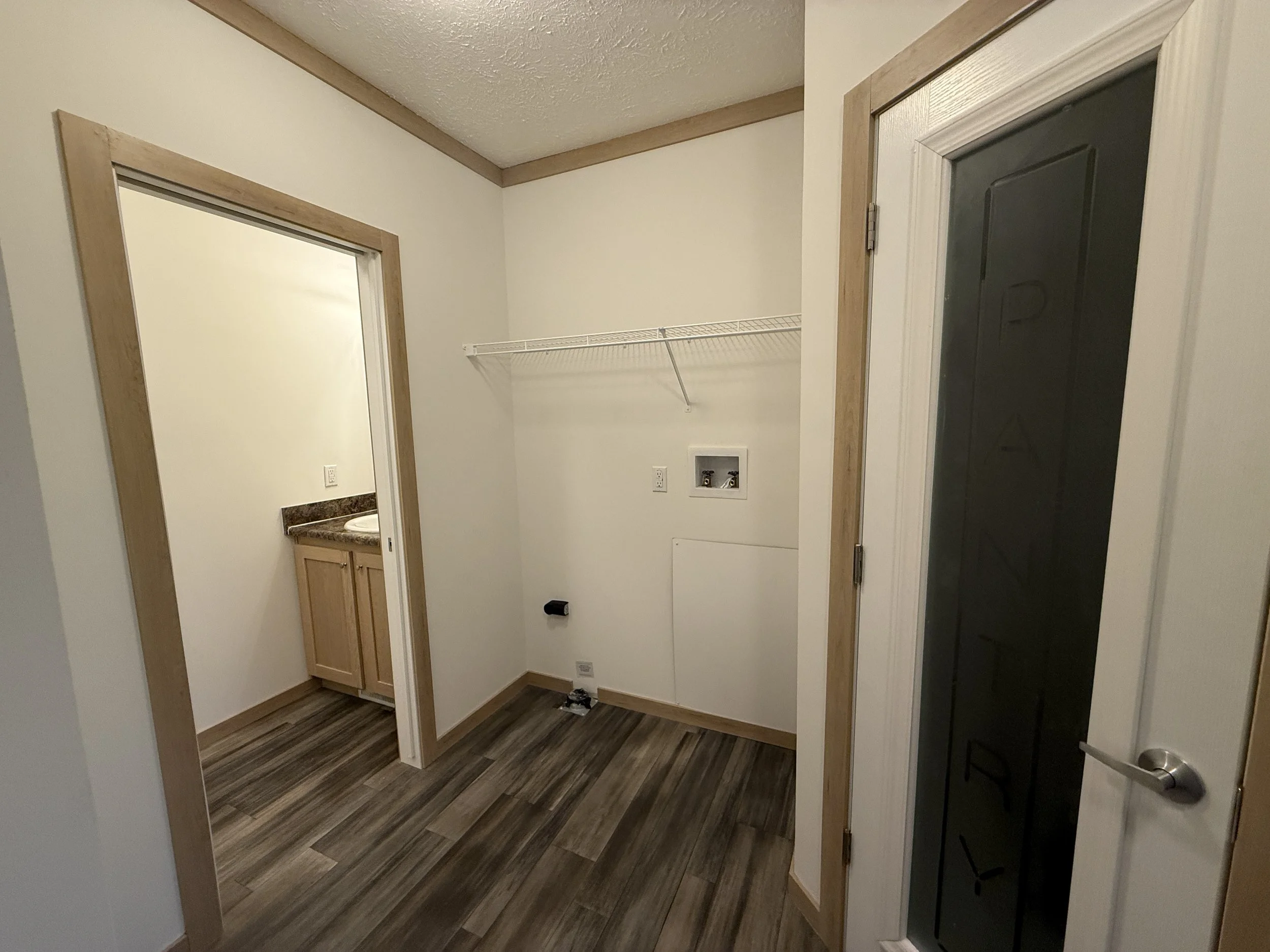 This 30' x 52' three-bed, two-bath home features an inviting front-facing layout with the kitchen, dining, and living rooms all positioned along the front of the home for bright, open living. A stylish clipped corner in the dining room adds architectural interest and extra charm, creating a unique focal point in this thoughtfully designed floor plan.